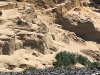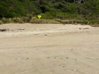 Sneaker waves were predicted and the sand showed recent signs of recent flooding. There were lots of Velvella jellyfish on the beach and most of these appeared dried out. I saw cracks and unstable areas of sand in the dunes and bluffs south of the Hobbit Beach trail entrance on the shore. I counted 11 people and two dogs on mile 180 during my visit.