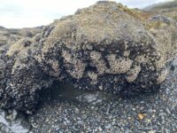 Unusual concentration. On the south beach there were 15-20 dead juvenile seastars. This is not a large number, given the many thousands of seastars that seem to be living here above and below the low-tide waterline, but I do not recall seeing any dead seastars here in the past. I could not tell what had killed them, but predators like gulls and maybe seals seem to be the most likely culprits. There was no evidence of wasting disease among them, though several were quite beat-up, either by predators or by prolonged exposure. There also seemed to be more crab shells and fragments on the north and south beaches than usual, perhaps due to seasonal changes.
