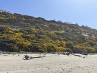Mostly animal casings, seaweed, shells and driftwood on the wrack line. There was some driftwood that appeared to have been burned, other driftwood that was staged to sit upright/ erect in the sand and finally at least one human-made driftwood fort.